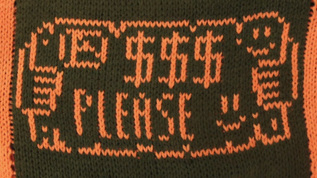 Pixel artwork for an animation created with a knitting machine by Sam Meech & Marilane Goudet (2015).